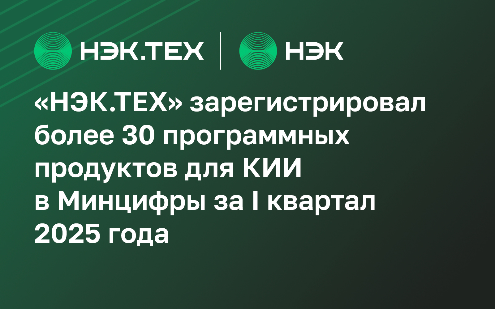 «НЭК.ТЕХ» зарегистрировал более 30 программных продуктов для КИИ в Минцифры за I квартал 2025 года